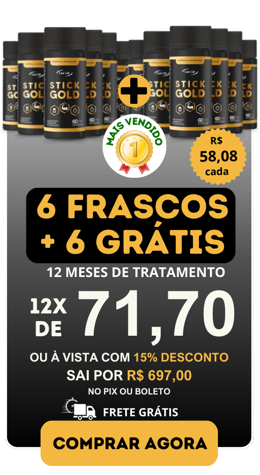 O kit mais escolhido pelos clientes é o kit 12 potes porque tem o melhor custo benefício. Você paga por 6 unidades de Stick Gold, recebe 12 e o frete é para qualquer lugar do Brasil. Esse pacote é indicado para o tratamento de 12 meses, que é o tempo ideal para que você tenha excelentes resultados.