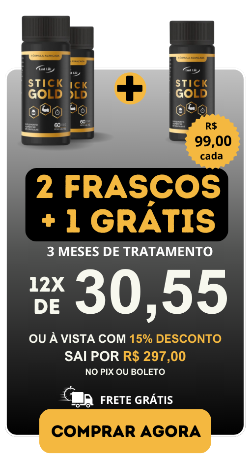 Com apenas duas cápsulas de Stick Gold por dia, logo na primeira semana, você vai perceber uma evolução incrível no seu apetite sexual, na sua potência e na duração de suas ereções.