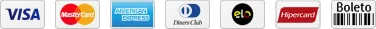 Aceitamos os cartões de crédito mais usados: VISA, Mastercard e outros. Você também pode optar pela opção de boleto bancário ou Pix.